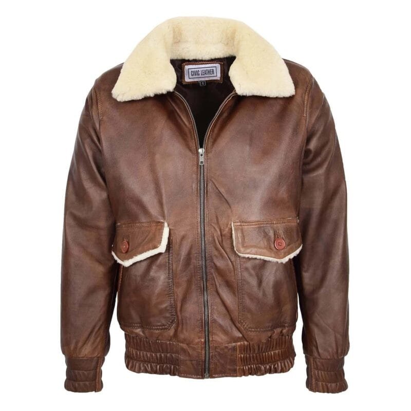Mens Leather Bomber Jacket G-1 Aviator Style Cooper Brown