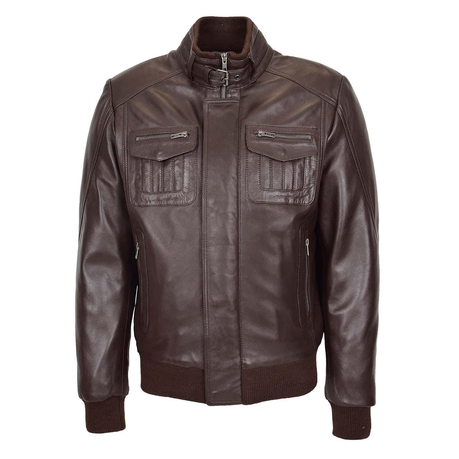 Home Men's Leather Bomber Jackets Mens Leather Bomber Flight Jacket Tom Brown