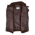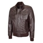 Mens Leather Bomber Flight Jacket Tom Brown is sure to give you an undisputed look. This leather bomber jacket for men amazing fitted style with soft sheep aniline leather to give the wearer a jacket that can be worn with anything. Also, this men’s leather bomber jacket features a popper button fly with YKK zip fastening, buckle at the neckline, and four front pockets. Inside, it is fully lined with polyester.