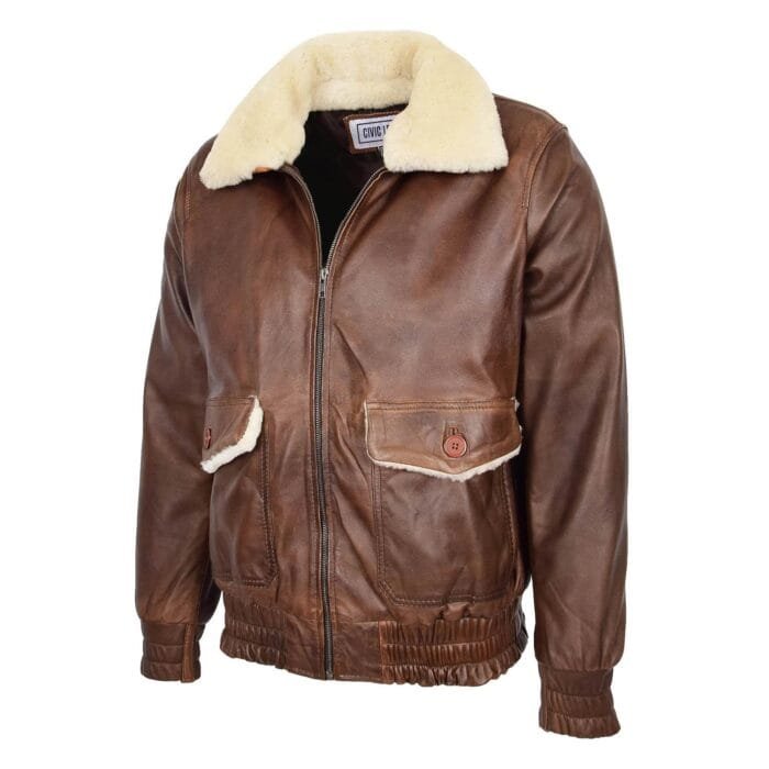 Mens Leather Bomber Jacket G-1 Aviator Style Cooper Brown