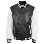 Home Men's Leather Blazer and Reefer Jackets Mens Leather College Boy Varsity Jacket Garry Black White